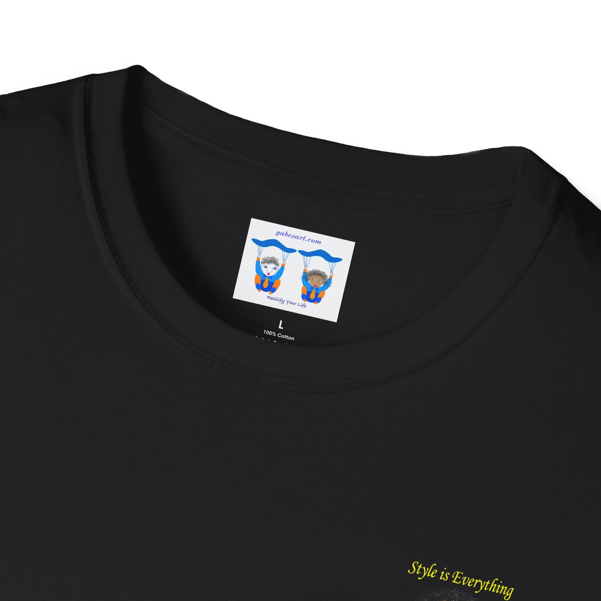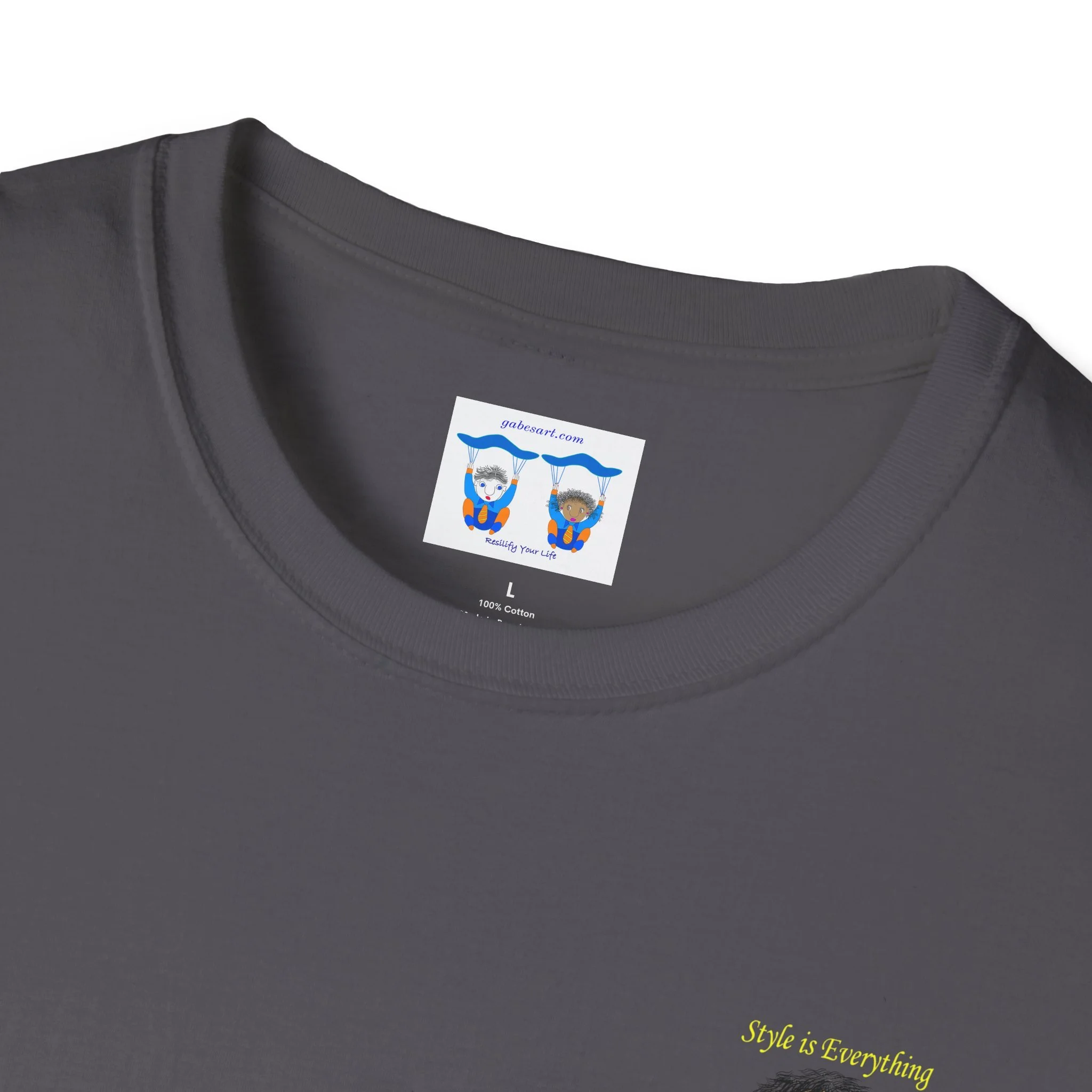 A lightweight, soft cotton tee with Style is everything illustration adds quiet personality to everyday wear. The clean crew neckline and classic fit make it comfortable for long days, while the smooth, durable fabric keeps the colors crisp. Wear it layered under a jacket for a casual outing or solo on warm days when you want a subtle statement — The style is everythig grafic is sure to draw attention from he or she. Time for summer wardrobe tees. For the man who has everything.